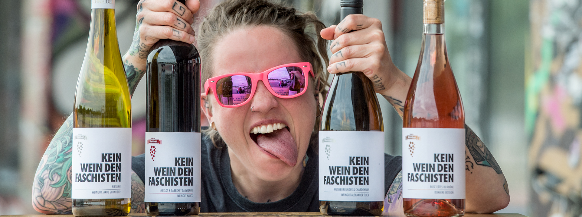 Wo „Kein Wein den Faschisten“ draufsteht, soll auch die richtige Haltung drinstecken.